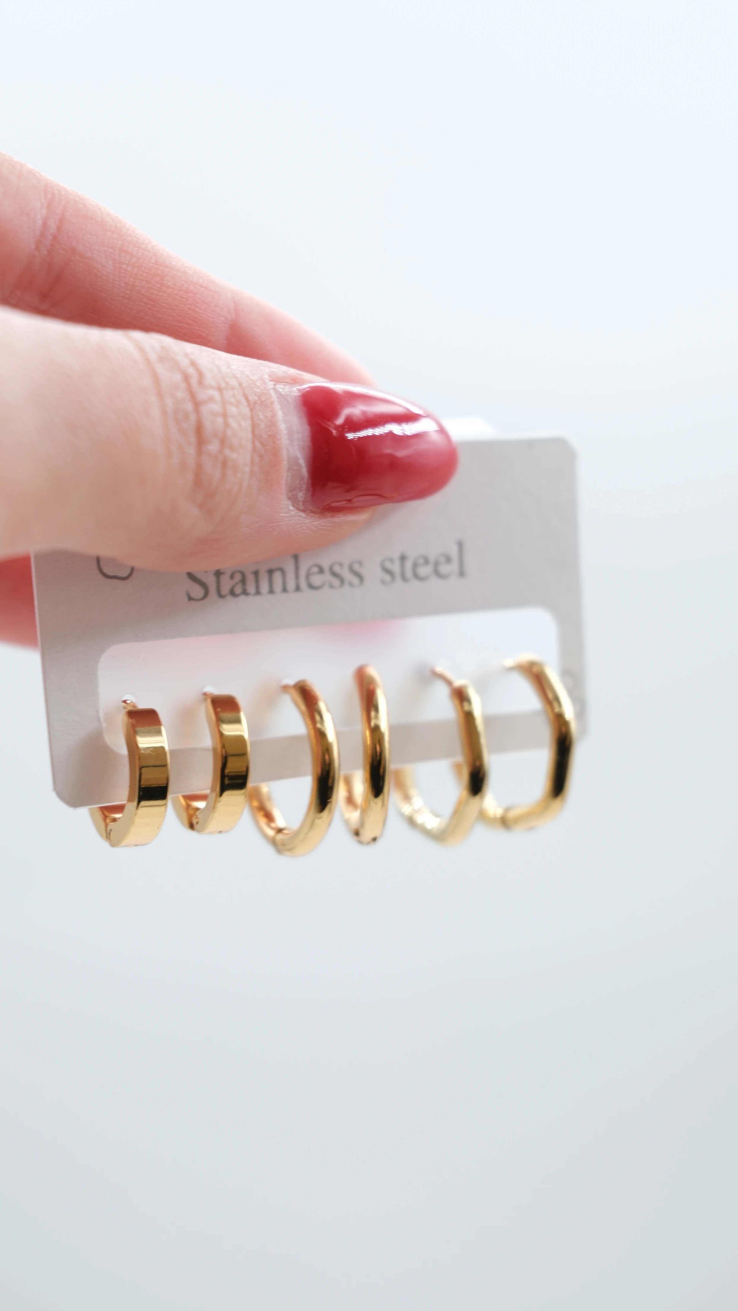 Silver Bombeli Minimal 6'lı Çelik Küpe Seti