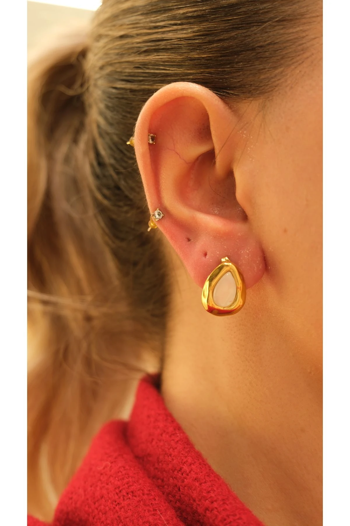 Gold Vintage Görünüm Mini Damla Sedef Çelik Küpe