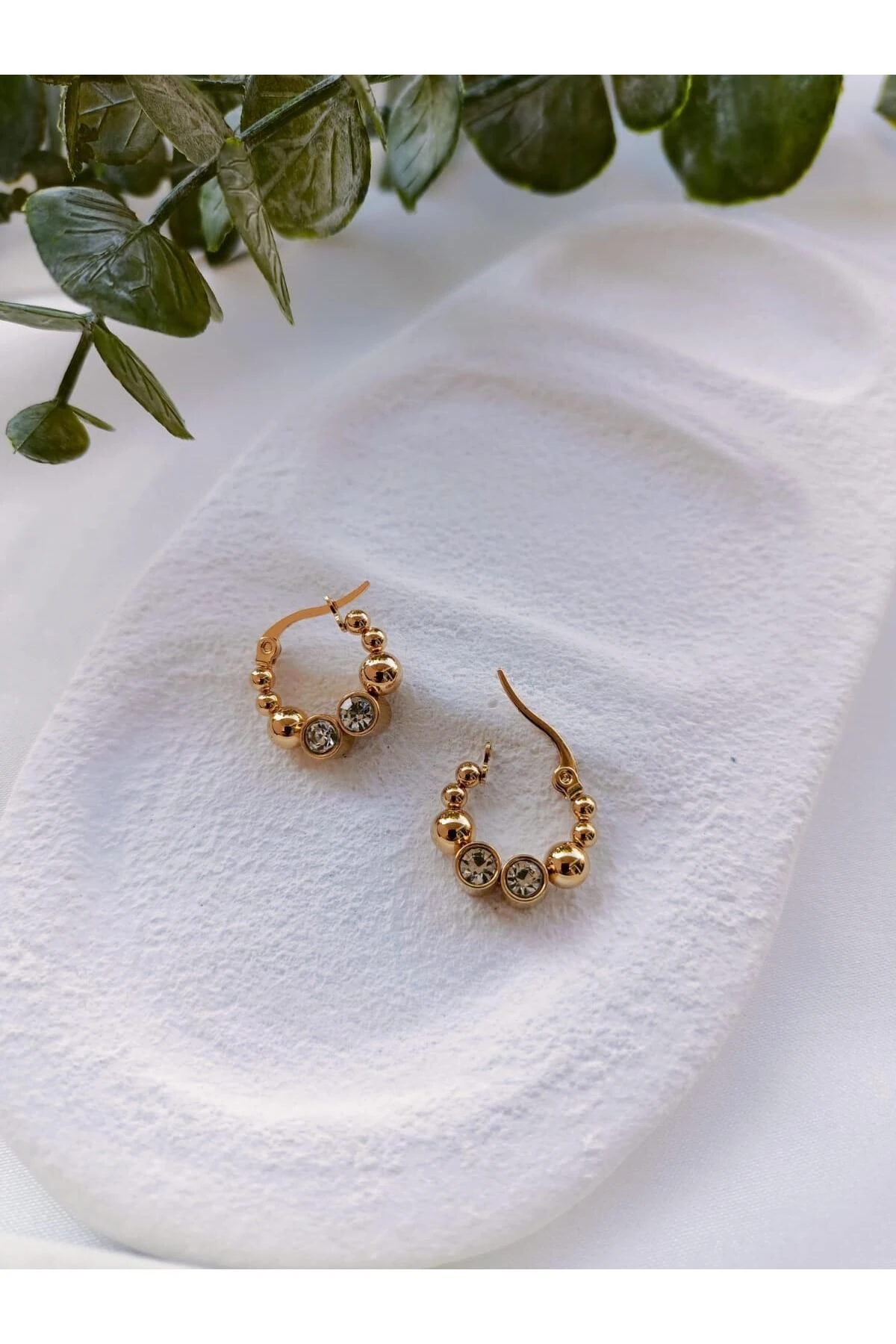 Gold Vintage Görünüm Renkli Taş Detay Çelik Küpe