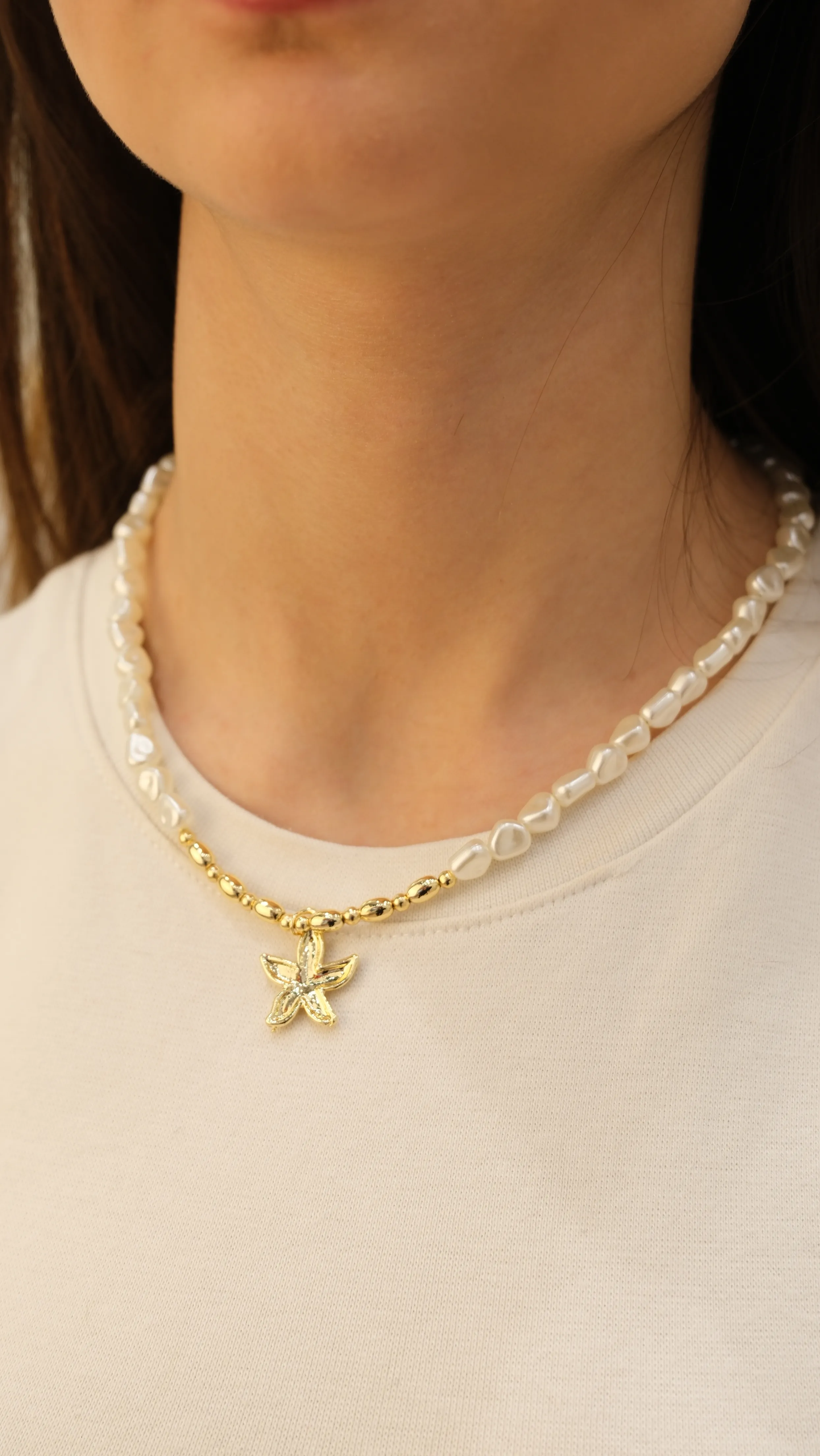 Gold Topçuk Detaylı Üçlü Görünüm Boncuk Kolye - 1