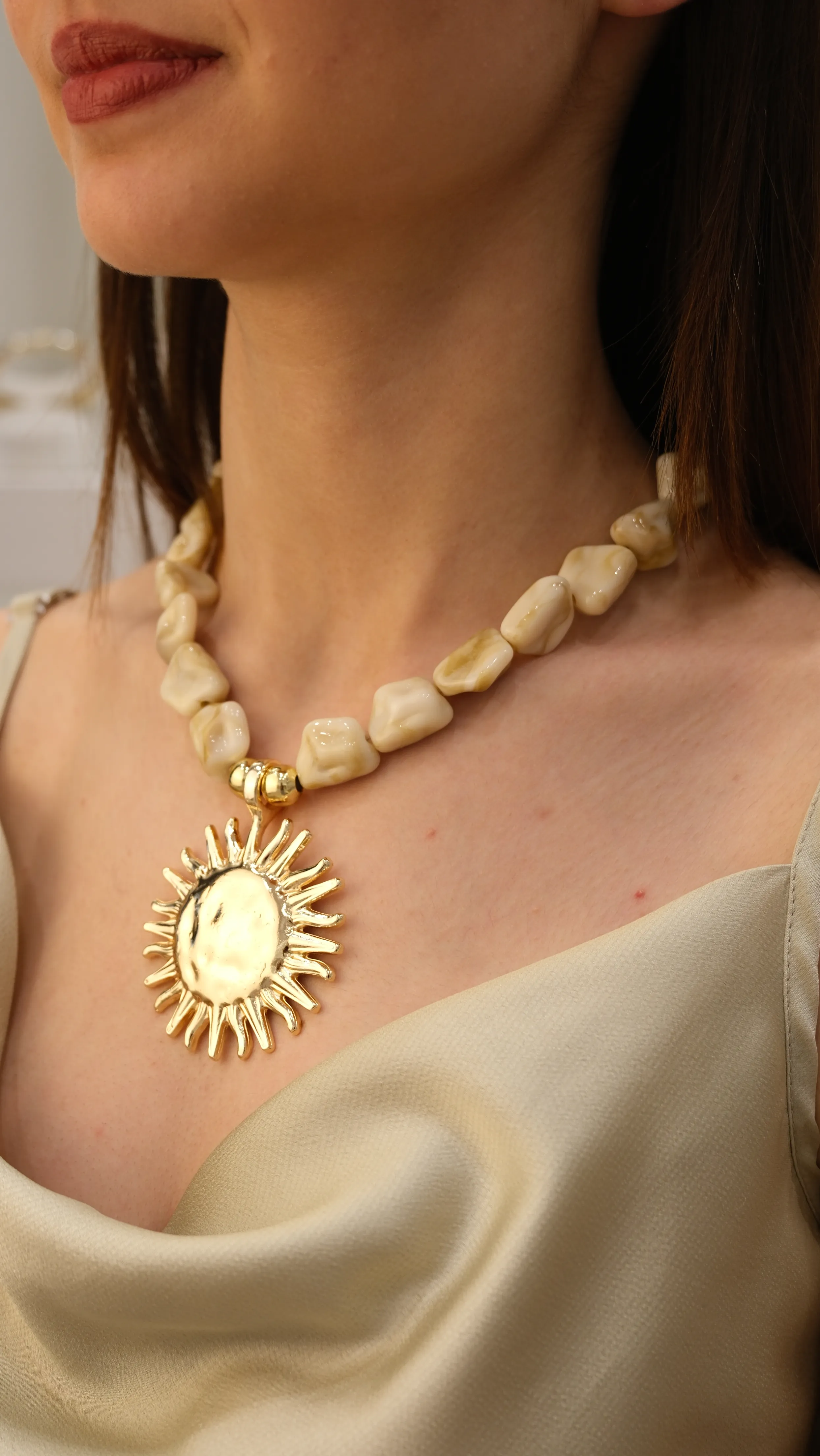 Gold Kahverengi Özel Seri Yuvarlak Taş İkili Kolye